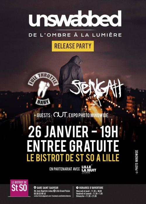 Pour cette release party à Saint So, vous retrouverez également Full Throttle Baby, Stengah, OUT et une exposition photographique de Mindwide, qui est à l'origine de l'univers visuel de Unswabbed.