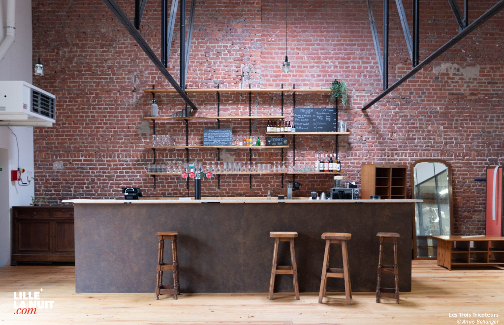 Les Trois Tricoteurs est un bar et atelier de tricot situé à Roubaix. Innovant et zéro déchet, on peut y customiser son pull et ses chaussettes, les regarder se tricoter tout en dégustant une boisson locale.