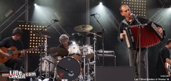 Les Têtes Raides ont présenté à l'Huma un concert quelque peu atypique : sur la thème de la commémorration de 1936, le groupe a invité de nombreux artistes, pour la plupart issus du milieu hip-hop ou du slam, pour intervenir pendant le concert. Le monde, que dis-je, la masse est au rendez-vous pour ce concert attendu : une foule énorme est réunie devant et autour de la grande scène, regardez les photos prises à ce moment là, c'est très impressionnant ! On voit de ci, de là des drapeaux rouges du PCF, des drapeaux bleus européens, ils ressemblent à de petits ilots noyés dans cette marée de têtes humaines.