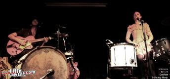 « On est très content d’être parmi vous ce soir ! On vient du Jura, autant dire la porte d’à côté » annonce la chanteuse. Dans la salle, on se laisse très vite prendre par la fougue du groupe qui nous emmène sur un pont entre Moriarty et The Kills. Un public très réceptif qu’il faut à peine inviter à taper des mains pour qu’il s’exécute. Il faut dire que lorsqu’Amandine se pose derrière sa batterie, il est difficile de ne pas la soutenir quand elle martèle ses fûts de façon binaire et puissante. Avec sa robe vintage et l’énergie qu’elle a, on pense à Meg White des White Stripes. Plus tard elle n’hésite pas à jouer de son charme avec ses déhanchés sexy et ses dandinements tout en lançant des vibrants "I love you" lorsque le duo reprend I Put A Spell On You.