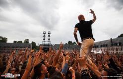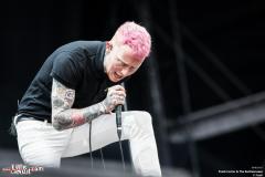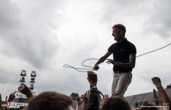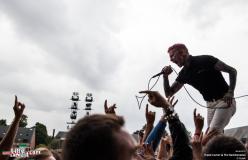 Alors que The NoFace continue leur set, on entend les basses de la Main Stage résonner… C’est Frank Carter & The Rattlesnakes qui y font monter la température d’un cran ! Les Rattlesnakes sont anglais et sont emmenés par l’énervé Frank Carter, ancien leader de Gallows. Le punk est leur maître mot. Guitares poussées à l’extrême tout comme la voix de Frank. Et le moins qu’on puisse dire c’est que ce dernier sait mettre l’ambiance. A peine deux chansons et le voilà à faire coucou au public. Lorsqu’il nous annonce une chanson d’amour il demande au public d'attraper son partenaire et de l’embrasser pendant les trois prochaines minutes « in The french way ! ». Puis il fait courir les gens en cercle, leur demande de recommencer parce que le résultat n'est pas à la hauteur de ses attentes. Frank parle beaucoup mais peu importe car il sait nous faire rire !