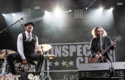 Malheureusement nous n’aurons pas eu l’occasion d’écouter North Rain qui a donné le coup d’envoi du festival sur la Greenroom. The Inspector Cluzo nous viennent donc de Gascogne comme ils se plaisent à le rappeler à la fin de leur set et dans leur langue s’il vous plaît ! Le duo distille son rock puissant avec une bonne humeur très communicative. La pluie fait une petite apparition mais le public n’en a que faire. On ne sait pas si les foies gras et les rillettes bio que font les deux compères, le reste du temps, sont goûteux mais une chose est sûre pour le rock ils sont plus que bons !