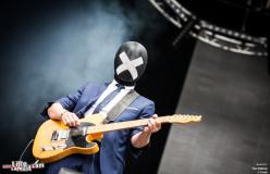 Le temps de parcourir les stands de nourriture divers et variés, nous arrivons sur la Green Room ou The Noface se produisent. Suite au split du groupe lillois connu et reconnu Skip The Use, quatre membres (sauf Mat Bastard qui a préféré se la jouer solo…) ont créé ce quintet et le résultat est vraiment très sympa. La voix puissante de la chanteuse nous transporte sans effort. Visuellement, les musiciens en costume et tous masqués en opposition avec Oma qui chante « à découvert » fait son petit effet. Niveau musical rien de bien nouveau : du bon rock où guitares et batterie se mêlent. Le public aime et nous aussi ! A noter que leur premier album devrait sortir en septembre.
