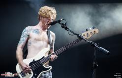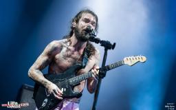 Heureusement, les deux scènes sont proches, et il nous faut peu de temps pour rejoindre la Main Stage et s’installer tranquillement pour écouter Biffy Clyro. Que de bonnes surprises en ce premier jour de festival et on est convaincu que cela va continuer avec le trio écossais. Plus présents ces dernières années dans les festivals français que dans les salles, on est contents de les retrouver ! Les rockeurs un peu intellos savent jouer. L’air de rien, ils envoient leur rock puissant dont les basses font vibrer le sol. Le public manifeste sa joie bruyamment et le groupe le remerciera à de nombreuses reprise « Merci beaucoup people ! We are Biffy F***ing Clyro ! »